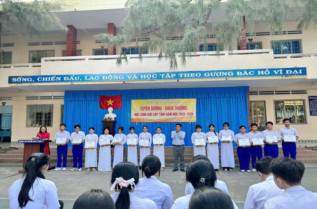 Lễ tuyên dương là sự ghi nhận xứng đáng, đồng thời lan tỏa mạnh mẽ tinh thần hiếu học, ý chí vươn lên và khát vọng chinh phục đỉnh cao tri thức trong toàn trường. Những thành tích hôm nay sẽ tiếp tục là động lực để thầy và trò trường THPT Nguyễn Ngọc Thăng vững bước trên hành trình nâng cao chất lượng giáo dục, hướng tới những thành tựu rực rỡ hơn trong tương lai, xứng đáng với kì vọng cũng như sự tin tưởng và gửi gắm của quý phụ huynh./.